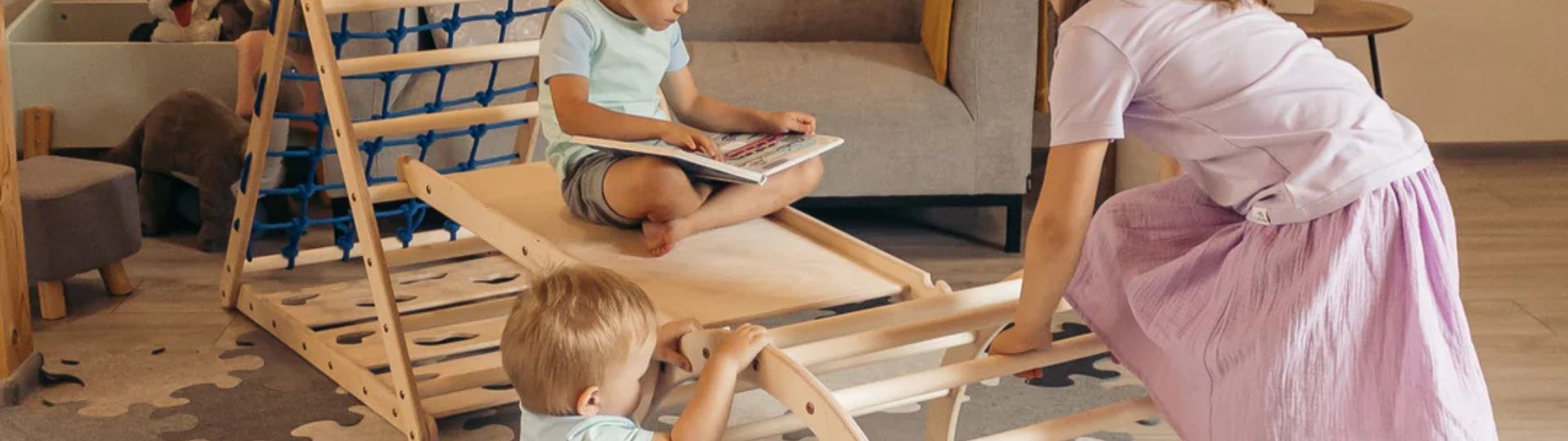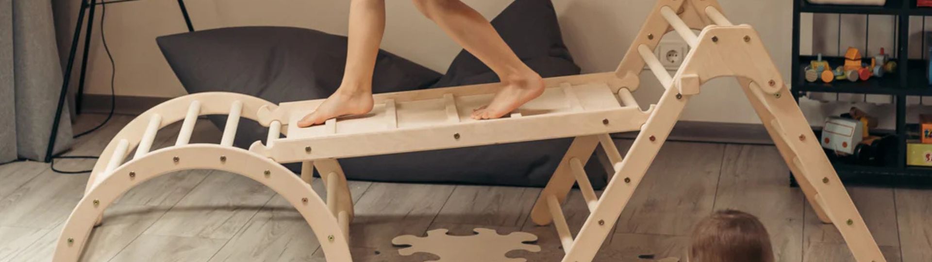 Design4Kids Montessori Kletterset Tarsier - Pikler-Kletterdreieck mit Rutsche und Kletterbogen