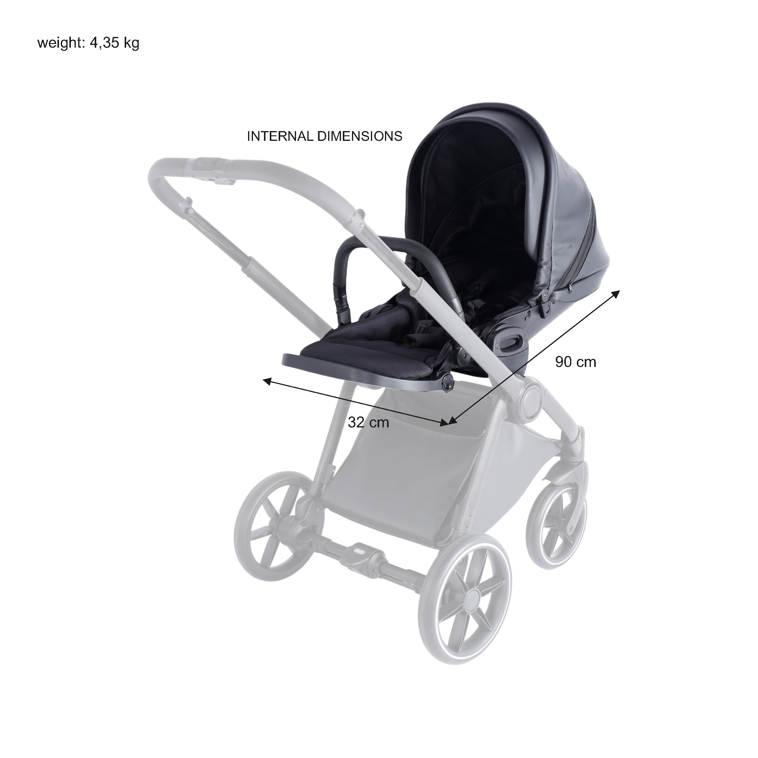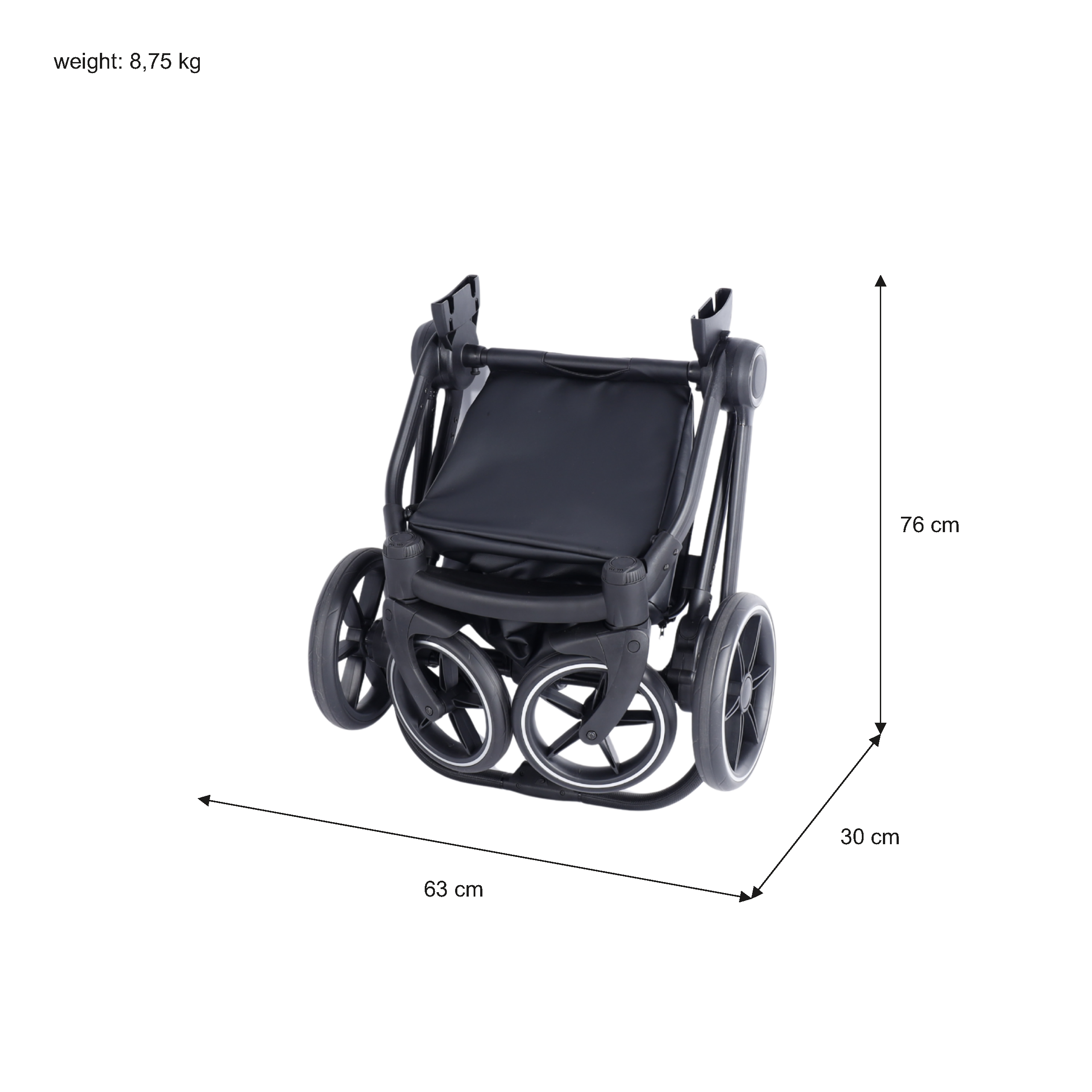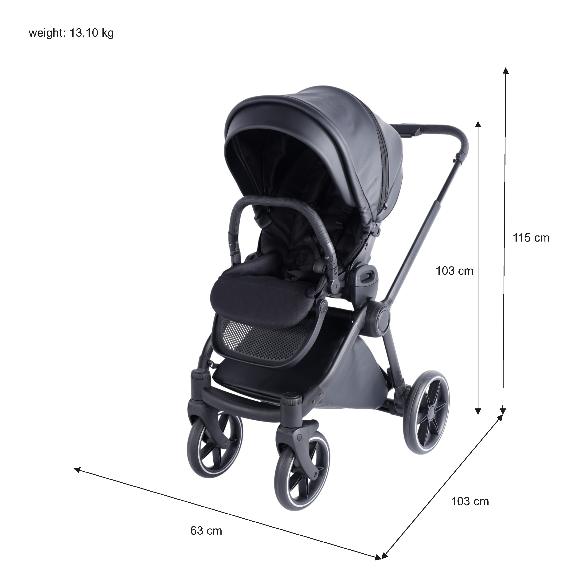 Sein veganes Kunstleder, das matte schwarze Gestell und das intuitive 2-in-1-System machen ihn zu einem Kinderwagen, der ebenso elegant wie funktional ist – durchdacht bis ins Detail und auf Langlebigkeit ausgelegt.
