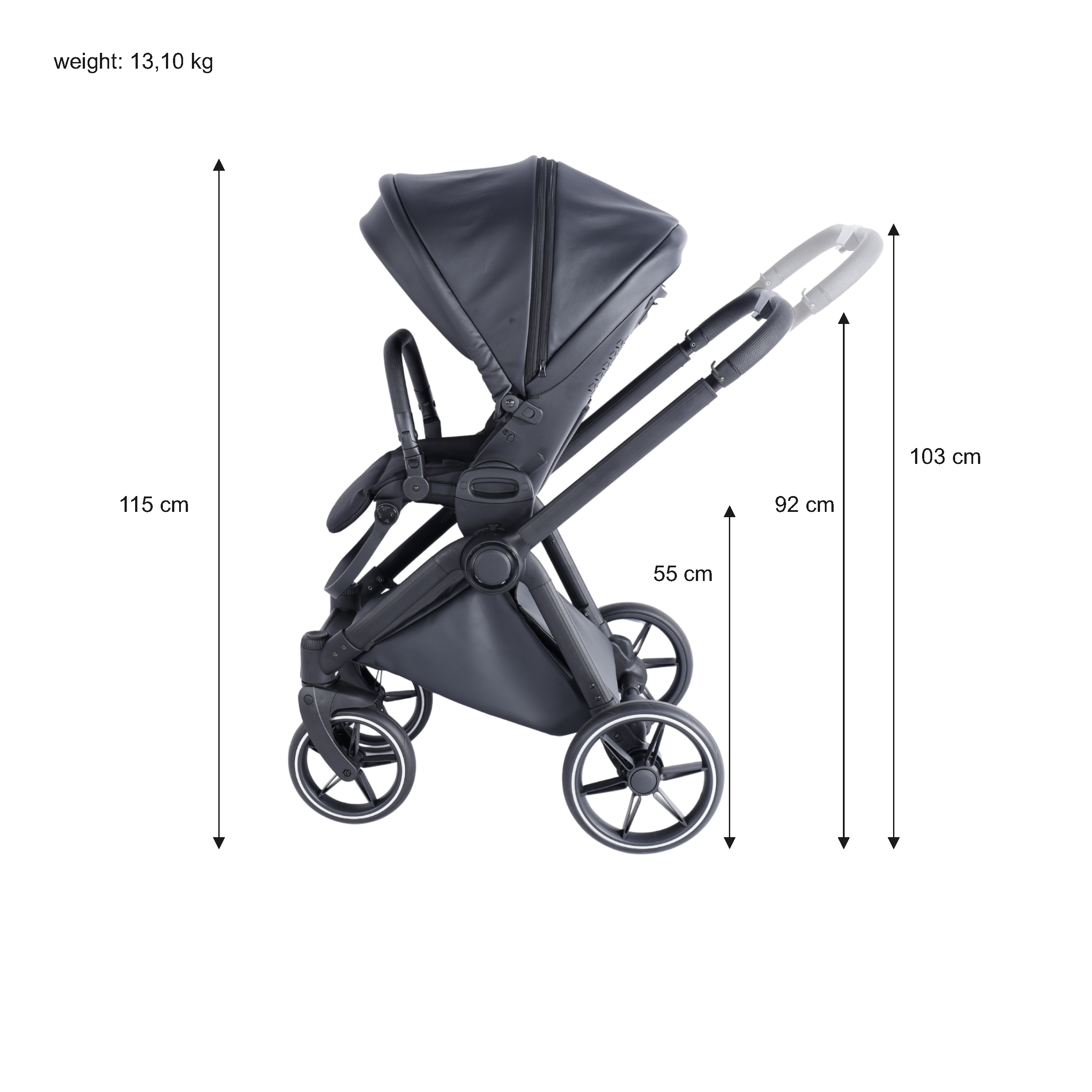 Der Noir steht für Ästhetik und Alltagstauglichkeit zugleich. Sein mattschwarzes Gestell, die hochwertigen Stoffe und die klaren Linien machen ihn zum Blickfang auf jedem Spaziergang.